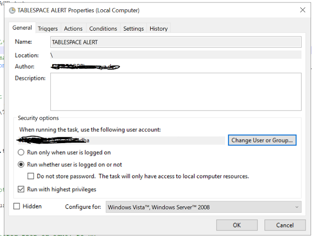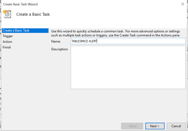 Issue: We had a requirement for a customer, where oracle 19c database was running on Windows server 2019. Customer wanted to monitor tablespace’s datafile usage and get email alert incase the used space is less than 80%