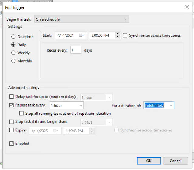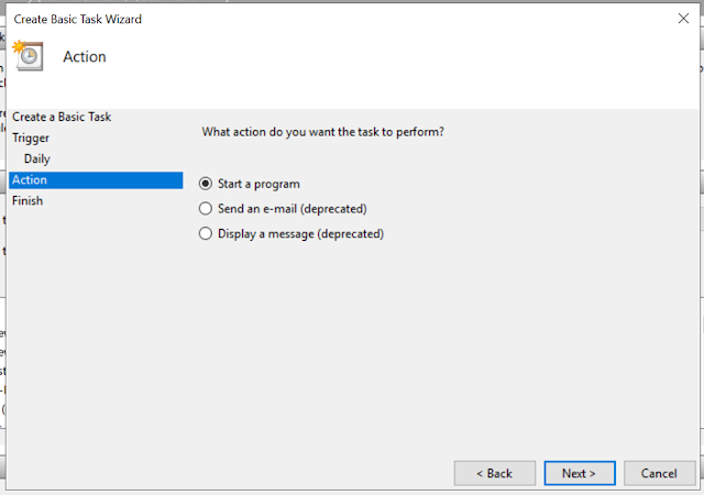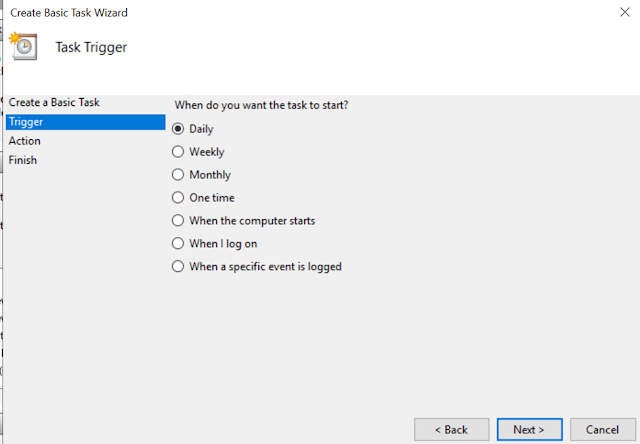 Open task scheduler and follow the following steps to schedule the batch script to run every 1 hour.