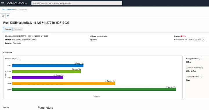 The link in the email will open the OCI Console in the data integration execution run;