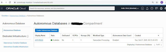 Lets assume we already have an Autonomous Database created. Here in our demo we are using one Autonomous Transaction Processing database namely ATP-PROD