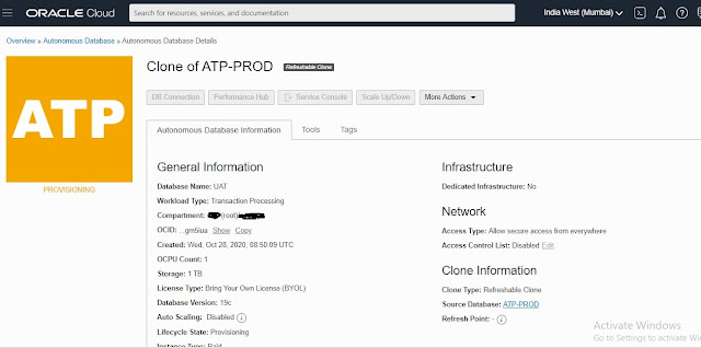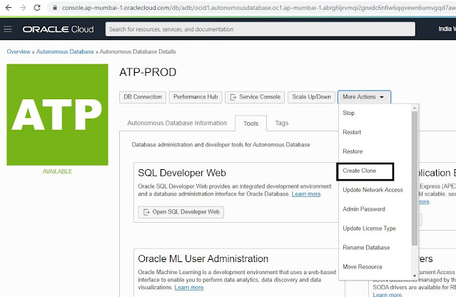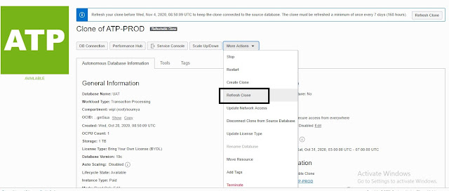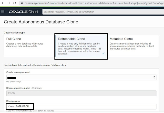 - Ø Oracle ADB refreshable clone feature is not available in Always Free Autonomous database.
