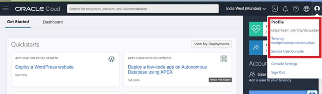 Finally we can log in to the child tenancy (wordprocomputerconsultan) using the parent tenancy IDCS users.