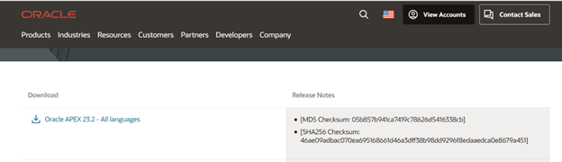 | SYS> SELECT comp_name, version, status FROM dba_registry WHERE comp_id=’APEX’; COMP_NAME VERSION STATUS —————————— —————————— ———– Oracle APEX 23.2.0 VALID |