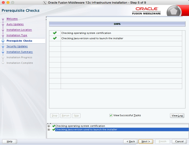 Wait for the prerequisite checks to complete. If there are failures, correct them and rerun the checks. If there are no failures, click the “Next” button.