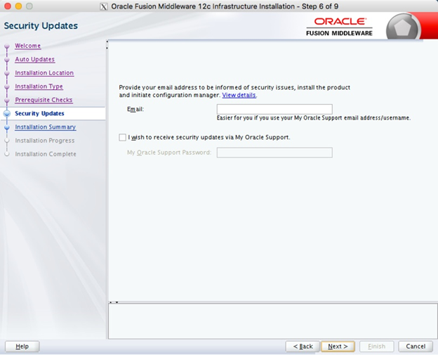 Enter your support details, or leave it unchecked the security updates checkbox. Click the “Next” button. If you chose not to receive security updates, click the “Yes” button on the warning dialog.