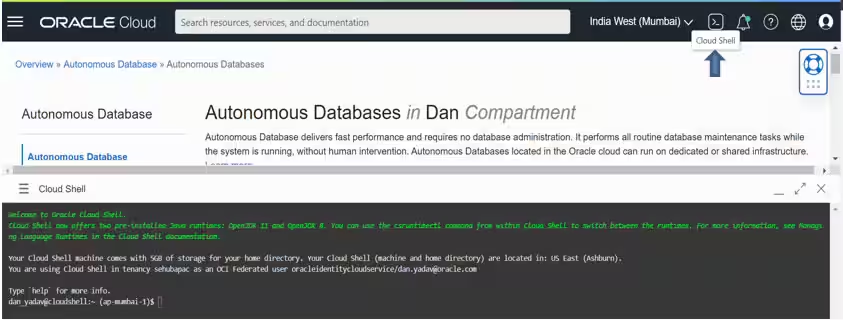 Simple steps to manage Autonomous Database from OCI Cloud Shell
