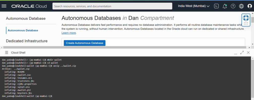 export TNS_ADMIN=/home/dan_yadav/walletecho $TNS_ADMIN