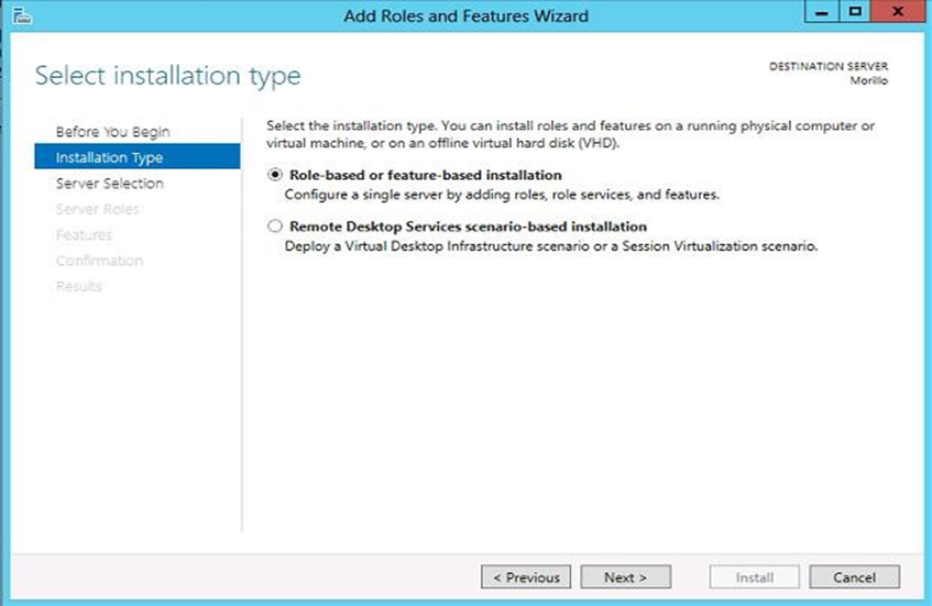 Step 3. On the installation type page, we chose “Role-based or feature-based installation”.