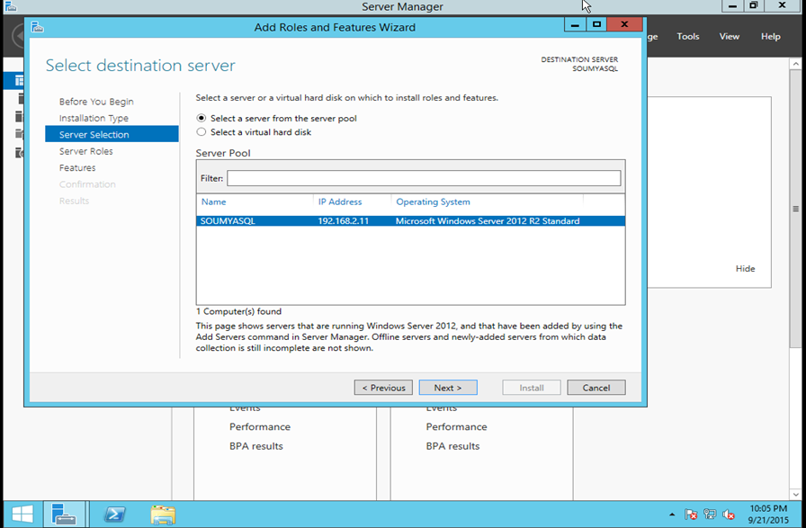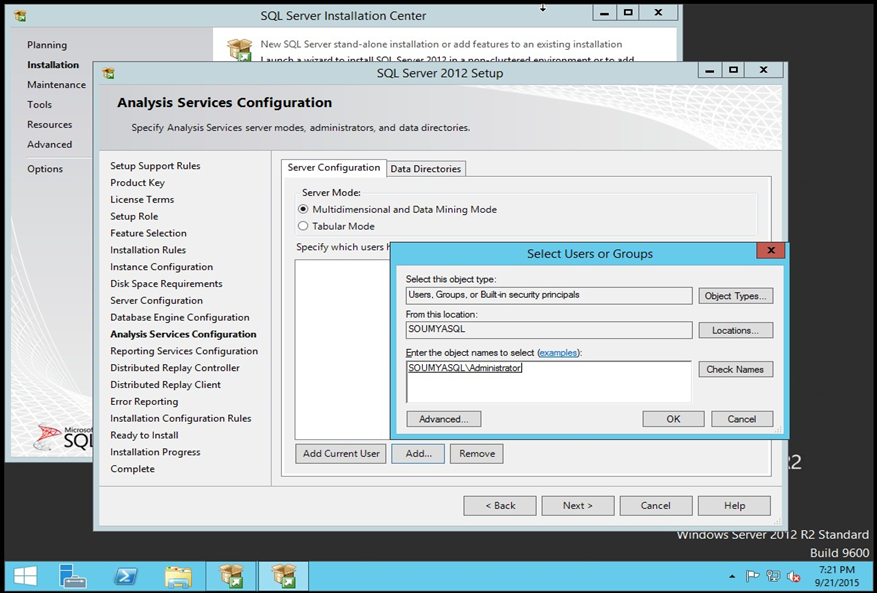 Step 4. On the Server Selection page of the wizard, we selected the actual server where we were installing SQL Server 2012.