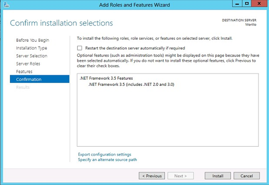 Now once installation of .NET Framework 3.5 has been done restart the server once.