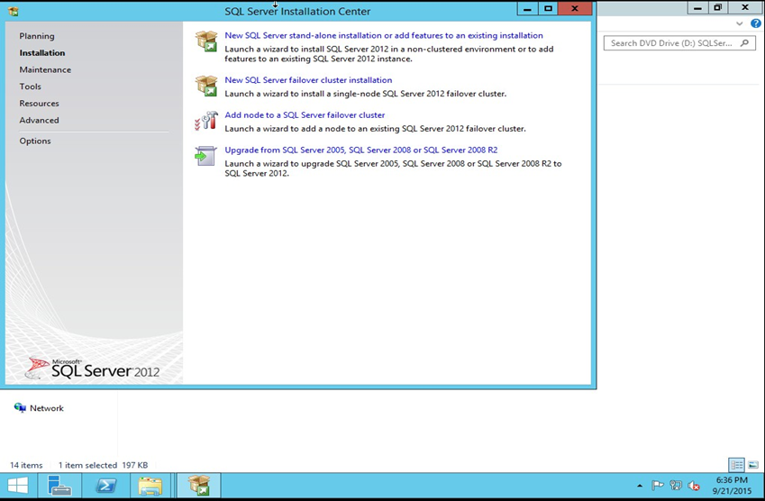 Step 2. Click on Installation, then ‘New SQL Server stand-alone installation…’ (top)