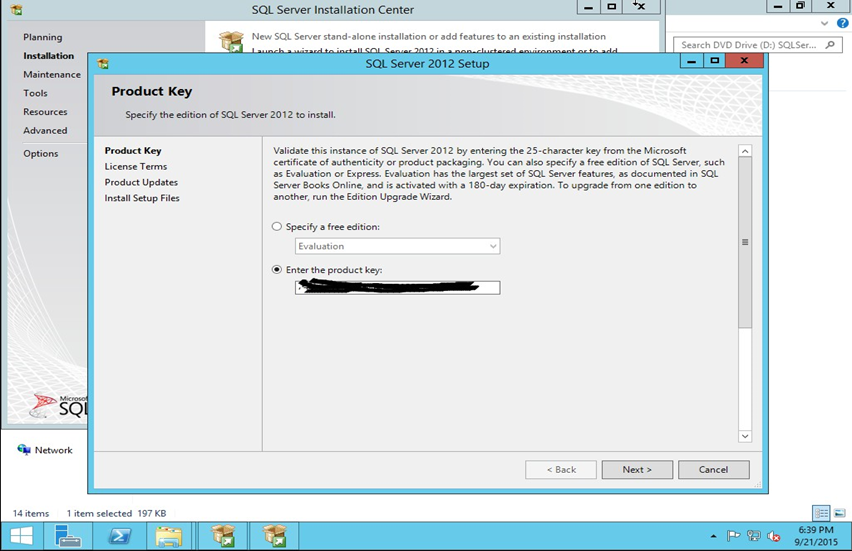 Step 4. Make sure there is key automatically taken from the ISO, enter your key, or chose Evaluation.