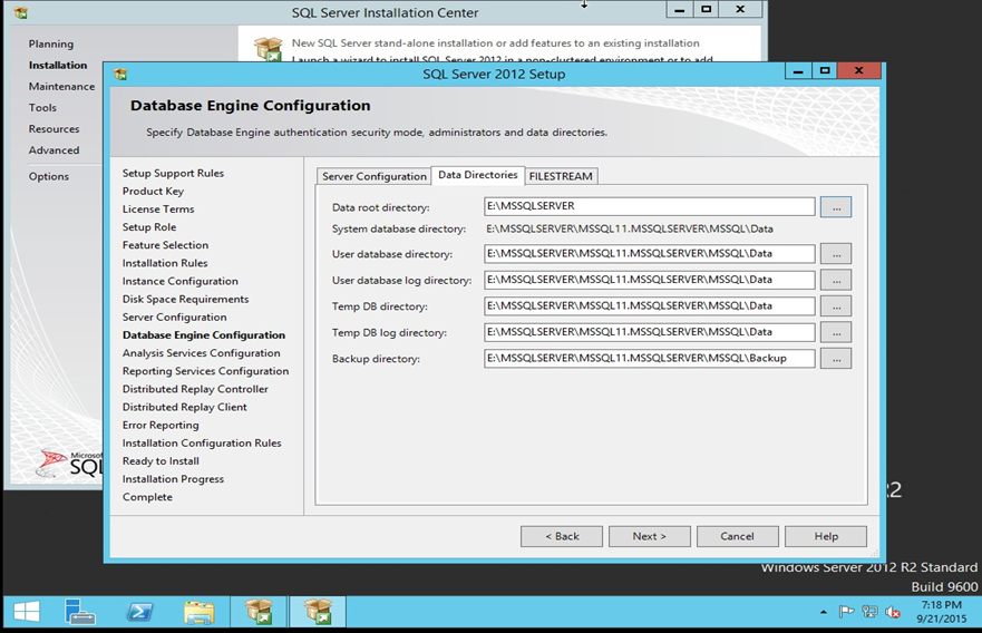 b) In the Data Directories input fields and place your files across drives, using the example below as a way to distribute your Database related files.